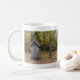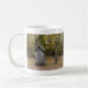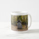 Coffee mug featuring a wooden outhouse at Pioneer Village at Harry S Truman Dam Visitor Centre in Warsaw, Missouri, United States. Before bathrooms were built in houses, they used outhouses.
