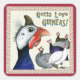 Guineas are interesting characters and fun to have in the yard, they will keep ticks and strangers at bay! Gotta love guineas!