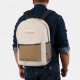 Gourmet Catering Printed Backpack is an elegant label for business. The typography and neutral colours are all in harmony. The business name on top and the business details at the bottom in a brown background.