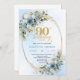 Graceful Bohemian Blue White Floral 90th Birthday Invitation