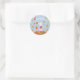 Adorable fall round kid sticker featuring a graceful white and pink cat surrounded by autumn leaves . Personalize it with the child's name .