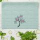 Add a calming focal point to your kitchen w/ a trendy kitchen towel featuring a graceful Asian flowering tree in mint sage green w/ plum coloured blossoms.