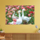 Celebrate nature's elegance with this vibrant painting of white geese wandering through a garden of pink blossoms — a perfect seasonal statement piece.