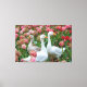 Graceful Geese in Blooming Garden Animal Lover Canvas Print