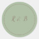 A graceful green and brown classic round sticker, you can insert your initials into the template. With a green background and brown font and border, personalise yours today!