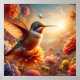 Graceful Hummingbird Soaring Above Blooming Flower Poster
