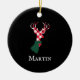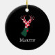 Graceful Reindeer Red Plaid Personalised Name Ceramic Tree Decoration
