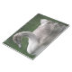 This awesome notepad features a photograph of a beautiful swan. The swan is a juvenile bird, you can tell by the grey feathers on the head and the lack of an orange beak. The swan is gliding gracefully across the water on a calm lake.