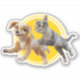 Capturing a whimsical moment from the new movie "Gracie & Pedro: Pets to the Rescue," this graphic illustrates the vibrant energy and friendship between Gracie, the golden-furred dog, and Pedro, the grey tabby cat. As they leap through the air, Gracie's mischievous grin and Pedro's wide-eyed expression evoke a sense of adventure and camaraderie. This dynamic illustration perfectly embodies the spirit of their on-screen teamwork and antics, making it an ideal representation for promotional materials related to the movie or merchandise featuring these beloved characters.