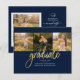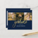 Graduation 4 Photo Collage Script Navy Gold Budget Announcement card. Easily customise this by changing the text and replacing the photos with yours. A modern and trendier way to announce your graduation this year!