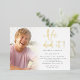 Grad 2025 Photo He Did It Graduation Gold. The elegance of real foil in gold for He Did It in set informal typography. Easily personalise the rest of the text and replace the photo with your favourite which has a graduated overlay on top so it fades away where text is partially overlaid on to it.