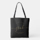 Graduation simple black and faux gold glitter tote bag in modern, chic and elegant typography style. Customize with graduate's name, year of graduation, and school name.