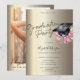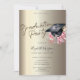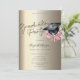 Grad Cap Flowers Bow Your Photo Gold Graduation Invitation