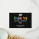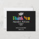 This is a modern and simple design with a grey graduation cap, yellow gold tassel, white text and black background. Colourful "Thank you” image. Yellow gold is printed colour, not metallic foil.