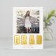 Introducing a contemporary and sophisticated graduation announcement for the Class of 2025, adorned with a touch of opulence through the use of modern and elegant gold foil. This exquisite design showcases the prominent "GRAD" inscription in shimmering gold foil, beautifully complemented by the graduate's captivating photo set against a pristine white background. Turning to the back, an additional photo graces the announcement, while also providing a platform to include all the essential details of this momentous graduation celebration.