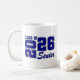 Grad senior ceramic coffee mug is shown in a blue and white colour design.