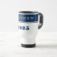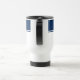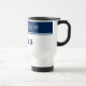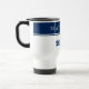 Grad travel coffee mug is shown in a navy blue and white colour design.