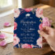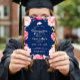 Grad Floral Wreath Navy Blue Graduation Party Invitation
