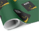 Creative graduation gift wrap and party decoration featuring black and gold graduation cap on green background. Edit text to add grad's name and the senior class year.