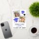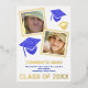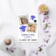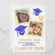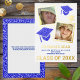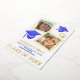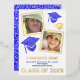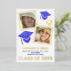 Personalise these faux navy blue glitter photo collage graduation announcements with real foil accents and announce your graduate's accomplishment in style. CONGRATS GRAD and CLASS OF 20XX, where you add the graduation year, are printed in real foil and balance with the simple deep blue font for your graduate's name and school or short message. Real foil borders around the two photos and a small real foil graduation cap graphic along with two faux navy blue glitter grad hats finish off the front of these custom graduation announcement cards. Each card reverses to white with a faux dark blue glitter border and a text template in a simple navy blue font so you can add additional details to your personalised real foil photo graduation announcements.