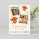 Personalise these faux orange glitter photo collage graduation announcements with real foil accents and announce your graduate's accomplishment in style. CONGRATS GRAD and CLASS OF 20XX, where you add the graduation year, are printed in real foil and balance with the simple orange font for your graduate's name and school or short message. Real foil borders around the two photos and a small real foil graduation cap graphic along with two faux orange glitter grad hats finish off the front of these custom graduation announcement cards. Each card reverses to white with a faux orange glitter border and a text template in a simple orange font so you can add additional details to your personalised real foil photo graduation announcements.