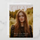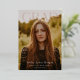 GRAD. Modern headline, in foil. Graduation 2 photo announcement/invitation. Full bleed photo on front, single photo on back with black background colour and celebration party invitation details.