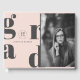 Our unique photo graduation party guest book in Blush Pink is completely personalizable, perfect for inviting your party guests to write down some words of advice, funny anecdotes, and good wishes to the new graduate. The design features the word "Grad" in bold typography distributed along the guest book, the graduate name, and graduate year. Personalise the template with the fields provided with your information. Designed by The 52Edit (the52edit.com)
