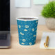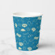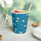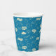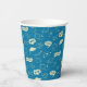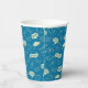 Celebrate a graduation with this festive blue paper cup featuring caps, stars, and congratulatory phrases.