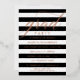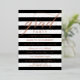 Chic and girly "Grad Party" calligraphy script graduation party invitations feature clean and sleek black and white horizontal stripes with modern real rose gold foil text that can be personalised for your graduate's special event.