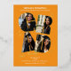 Shine Bright for the Big Day! Turn heads with this bold and vibrant foil graduation card featuring a striking orange background and shimmering foil accents. The standout design showcases the word "GRAD" in oversized typography, each letter filled with a personalised collage of your favourite photos—from senior moments to cap-and-gown memories. Each letter has a beautiful detail of a gold foil outline.