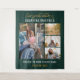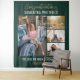 Photo collage gold script graduation party photo booth backdrop for the new grad. Features 4 photos of the graduate, and the word "Congratulations" is set. Add their name, school college, and class year of graduation by clicking the "Personalise" button.