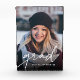 Commemorate a loved one's milestone with this sweet graduation keepsake that's perfect for elementary, middle, high school, or college. Simple and elegant design features a vertical photo with "grad" overlaid in white handwritten script lettering. Personalise with the graduate's school name and/or graduation year beneath.