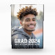 Graduation photo block with with the text "grad" and your year in a college sports style font with the school name or graduate's name below.