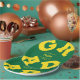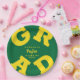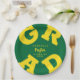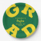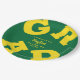 GRAD in bold yellow lettering curves around the edges of these green background graduation party paper plates - available in 2 sizes. Congratulations above the name of your graduate and the Class of below. The perfect addition to your table decor for upcoming grad parties. CHANGE THE COLORS to anything! **TIP: Click on CUSTOMIZE button; click on COLOR box on top right; enter your colour hex code in the #xxxxxx box to match your school colours. SEE ENTIRE COLLECTION of pre-done colour combinations and more ---> http://bit.ly/2EmBPHc <---
