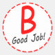 Grade B...Good Job! sticker. Great for teachers or students! Perfect for any homework, assignment, or test that requires a "B" letter grade.
