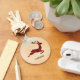 Modern black and red plaid deer over a gradient beige background. Optional monogram