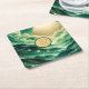 Gradient Emerald Kelly Green Glitter Monogrammed Square Paper Coaster
