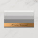 This delicate and classy card is based on gradient stripes coloured silvery grey, and a horizontal golden banner carrying your name. The rear side is clean with black text on white background, but where your name is coloured rose red, with a black shadow effect.