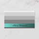 This delicate and classy card is based on gradient stripes coloured silvery grey, and a horizontal teal green banner carrying your name. The rear side is clean with black text on white background, but where your name is coloured rose red, with a black shadow effect.