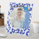 🖼️ Design: Blue leopard print border, customisable photo, "graduate" word, and blue leopard with graduation cap