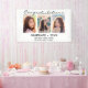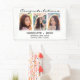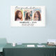 This custom graduation banner to celebrate your graduate features a photo collage of three photos. Above in black script it reads "Congratulations" and below "graduate 2023" with your name and school to personalise. Designed by artist Susan Coffey