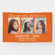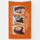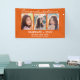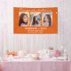 This custom graduation banner to celebrate your graduate features a photo collage of three photos on an orange background. Above in white script it reads "Congratulations" and below "Graduate 2023" with your name and school to personalise. Designed by artist Susan Coffey.