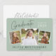 This modern graduation invitation showcases three photo spaces highlighting this year’s graduate. The design is accented with trendy, handwritten-style typography and features the graduate’s name and school on the front. The back offers custom text to share all of your party details.