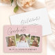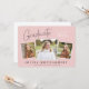 This modern graduation invitation showcases three photo spaces highlighting this year’s graduate. The design is accented with trendy, handwritten-style typography on the light dusty pink background. The back offers custom text to share all of your party details.