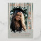 Elegant and stylish share the great news of graduation with the special persons in your life. Trendy and timeless at the same time, graduation announcement card with one cool photo template for your graduating child’s favourite photo and bold modern rose gold foil typography . Add also the year, the name and the university or college name and the degree for example. Embellished with the original hand painted striped pattern with subtle nuances of sage green and beige.