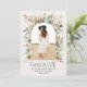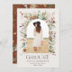 Graduate rust brown terracotta modern elegant watercolor dried botanical floral muted colours arch 1 photo announcement card. Contemporary modern typography.