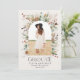 Graduate cream and green modern elegant watercolor dried botanical floral muted colours arch 1 photo announcement party invitation card. Contemporary modern typography.
