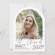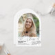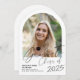 Elegant chic handwriting calligraphy script high school college or university simple minimalist arch graduation invitation with grad hat, custom photo, and text template. Easy to personalise on both sides.