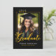 Graduate Black Gold Script Photo Graduation Announcement