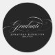 Graduate Black & White Fancy Script Graduation Classic Round Sticker